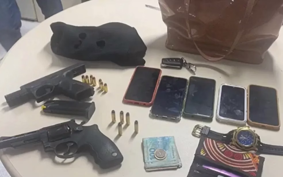 Um outro homem foi detido e levado para a Central de Flagrantes. Segundo a PM, com os dois homens foram encontrados uma pistola 9mm, um revólver calibre 38 com numeração raspada e uma balaclava. O material também foi entregue na unidade policial.