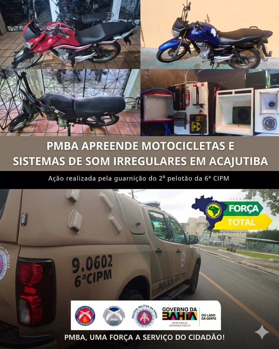 Uma série de ações realizadas pela Polícia Militar da Bahia (PMBA) ao longo da última semana resultou na apreensão de equipamentos e veículos irregulares no município de Acajutiba, no interior do estado.